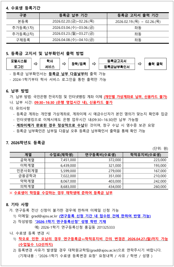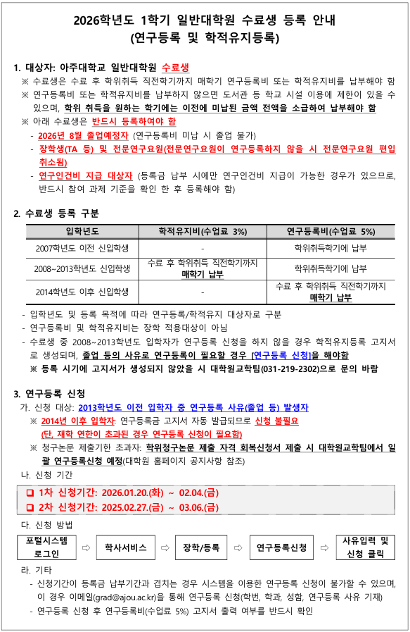 [학사] 2026-1학기 일반대학원 수료생 등록안내