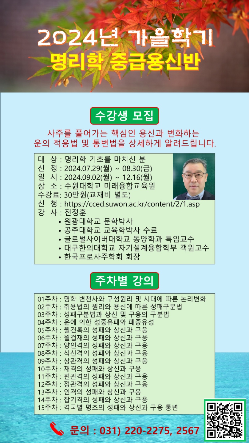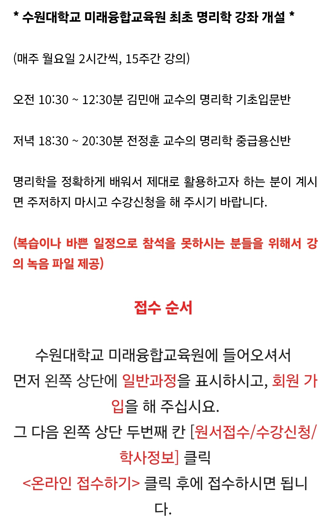 ~8.30모집)수원대 미래융합교육원 명리학 기초, 중급 수강생 모집