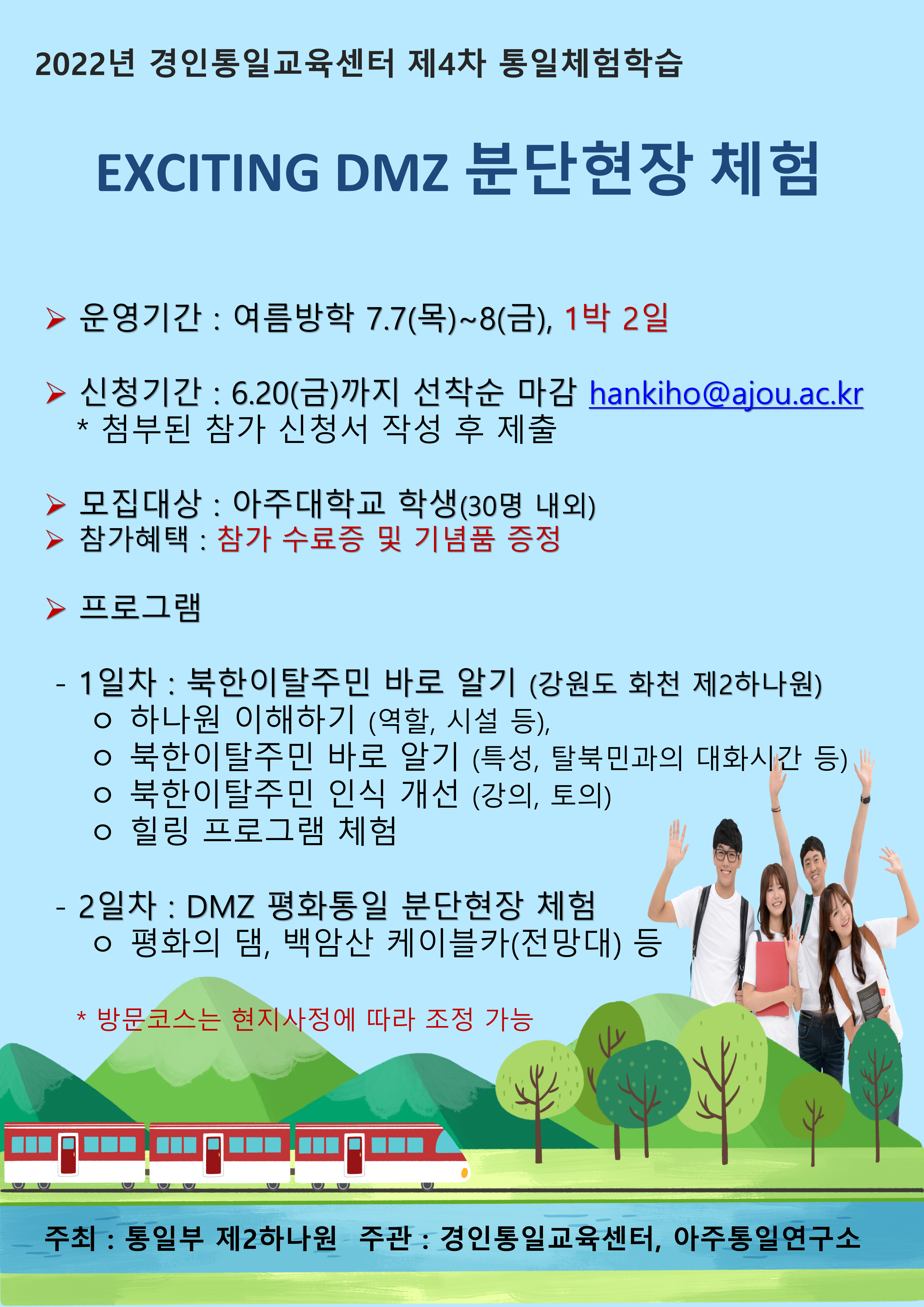 [아주통일연구소] 통일부 초청 DMZ 통일 현장체험 참가자 모집(~6.20)