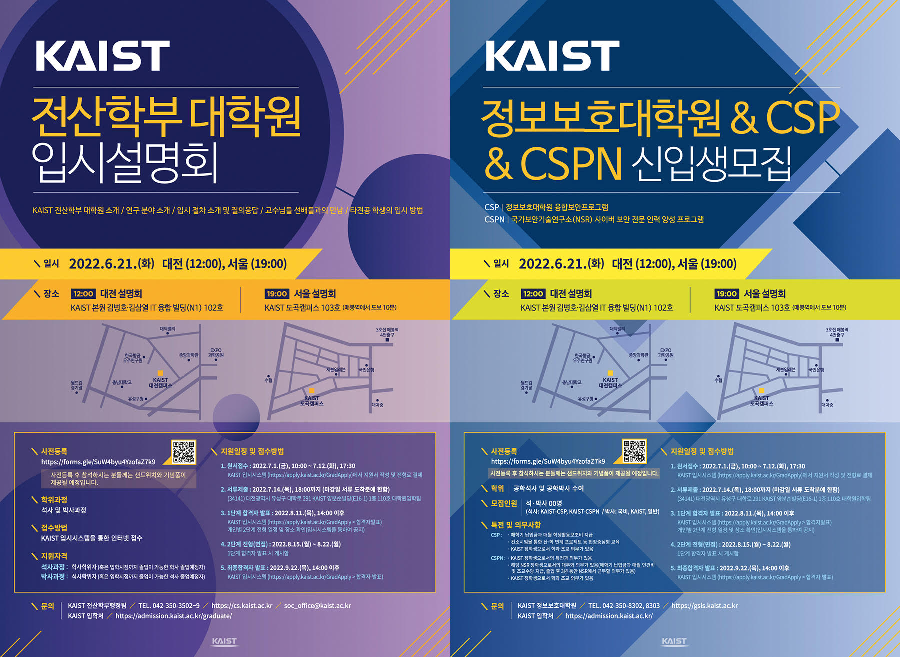 2023학년도 봄학기 KAIST 전산학부 및 정보보호대학원 & CSP & CSPN 입시설명회 안내