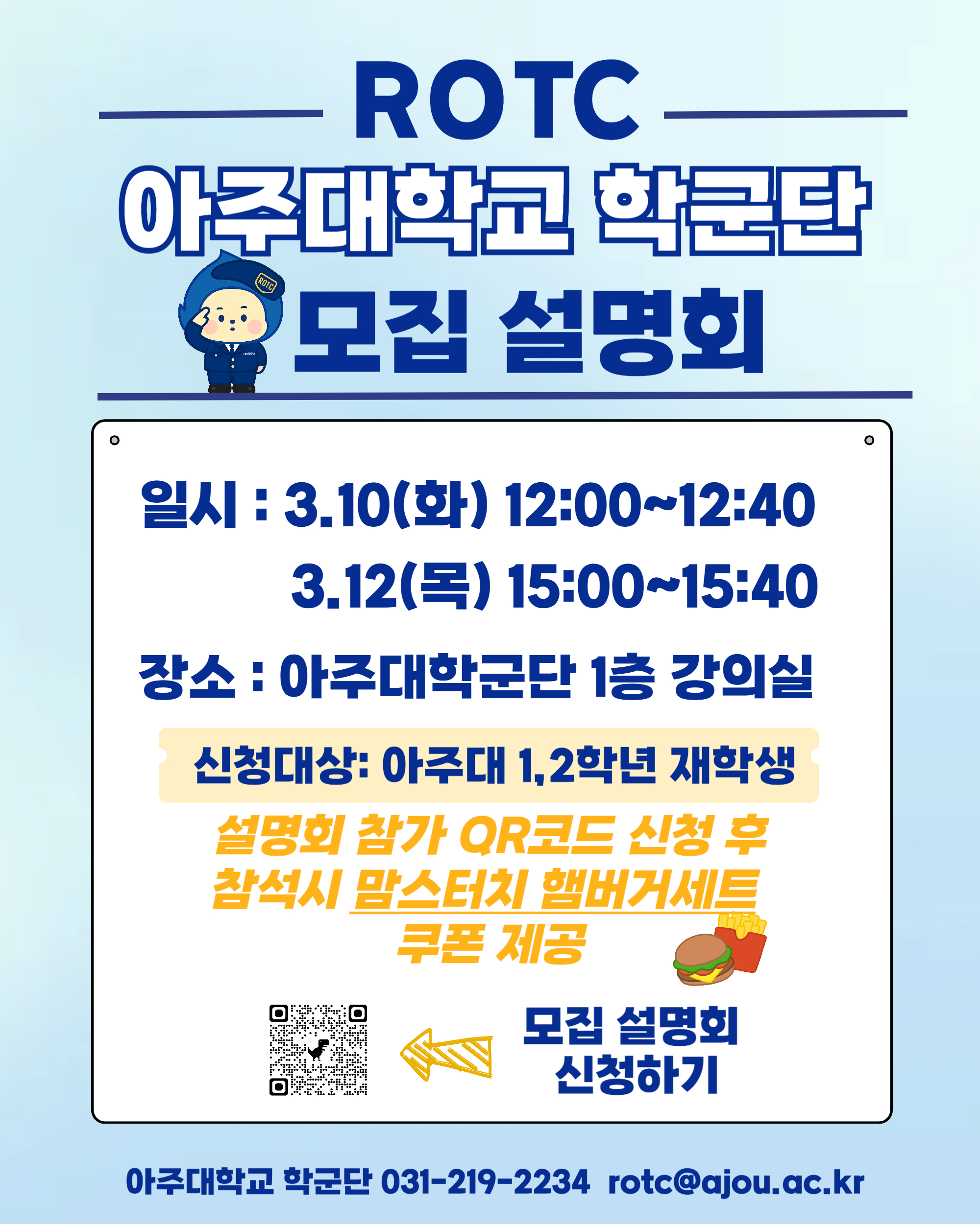 [행사] [학군단]26년 67,68기 모집설명회(맘스터치 햄버거셋트 쿠폰제공)