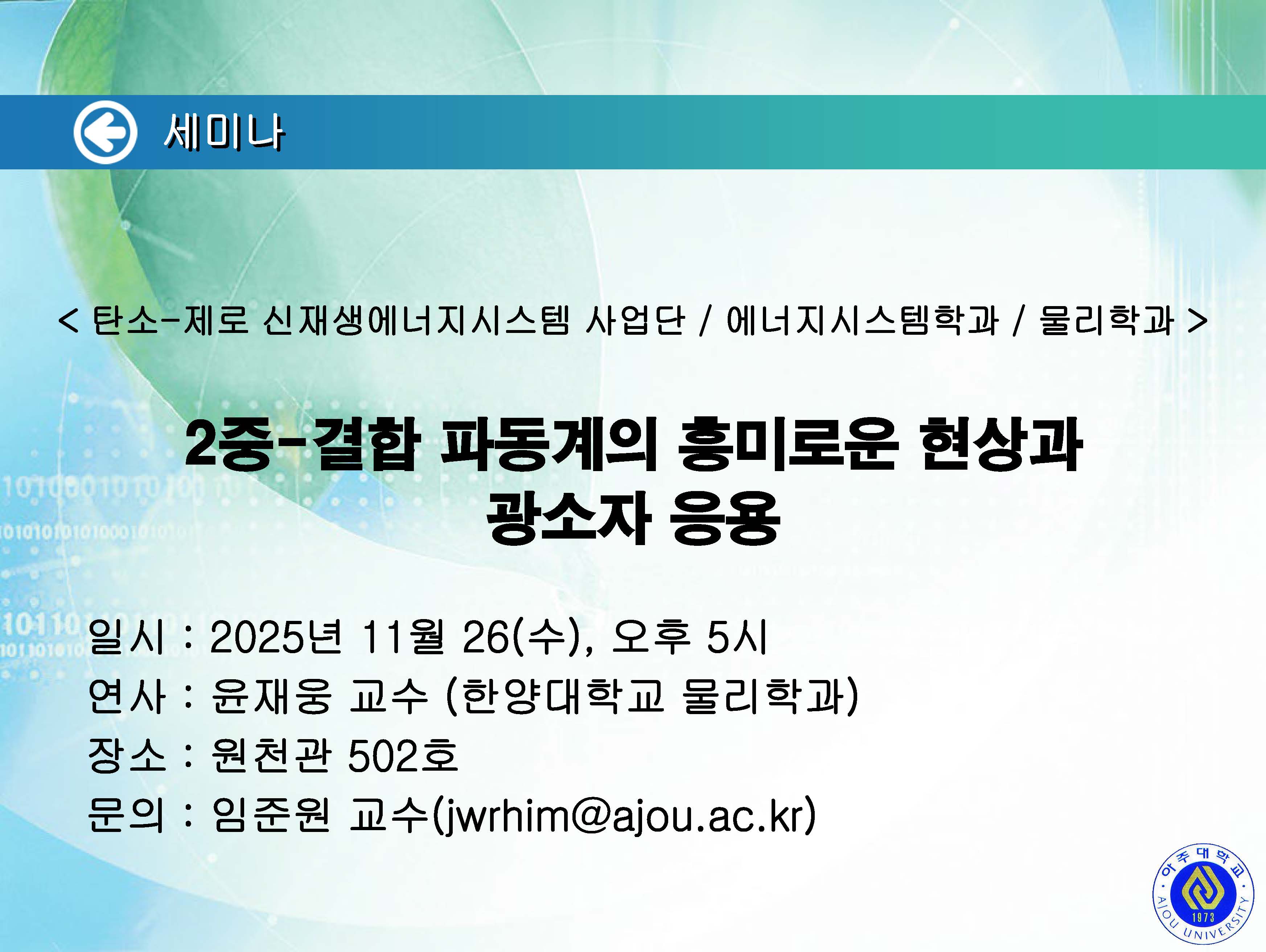| 1857 | 세미나/포럼 | 교내 | 2025-11-24 | ||